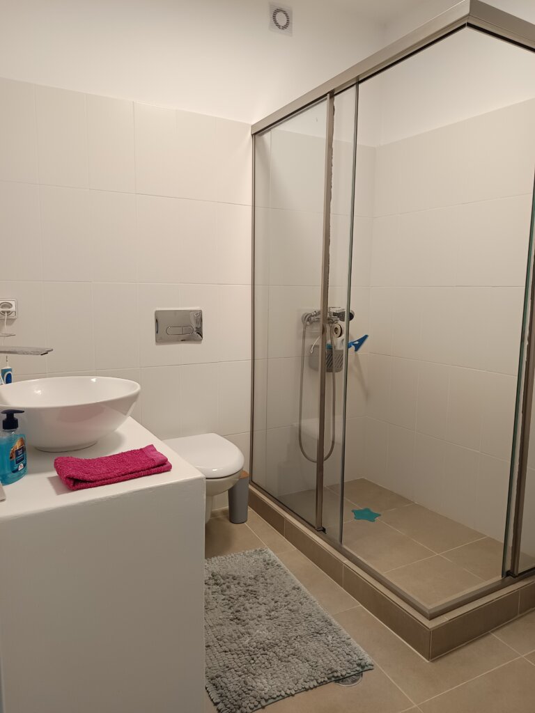 Le bâtiment n°2 est devenu une salle de douche/WC et une cave – pièce technique pour la pompe à chaleur.