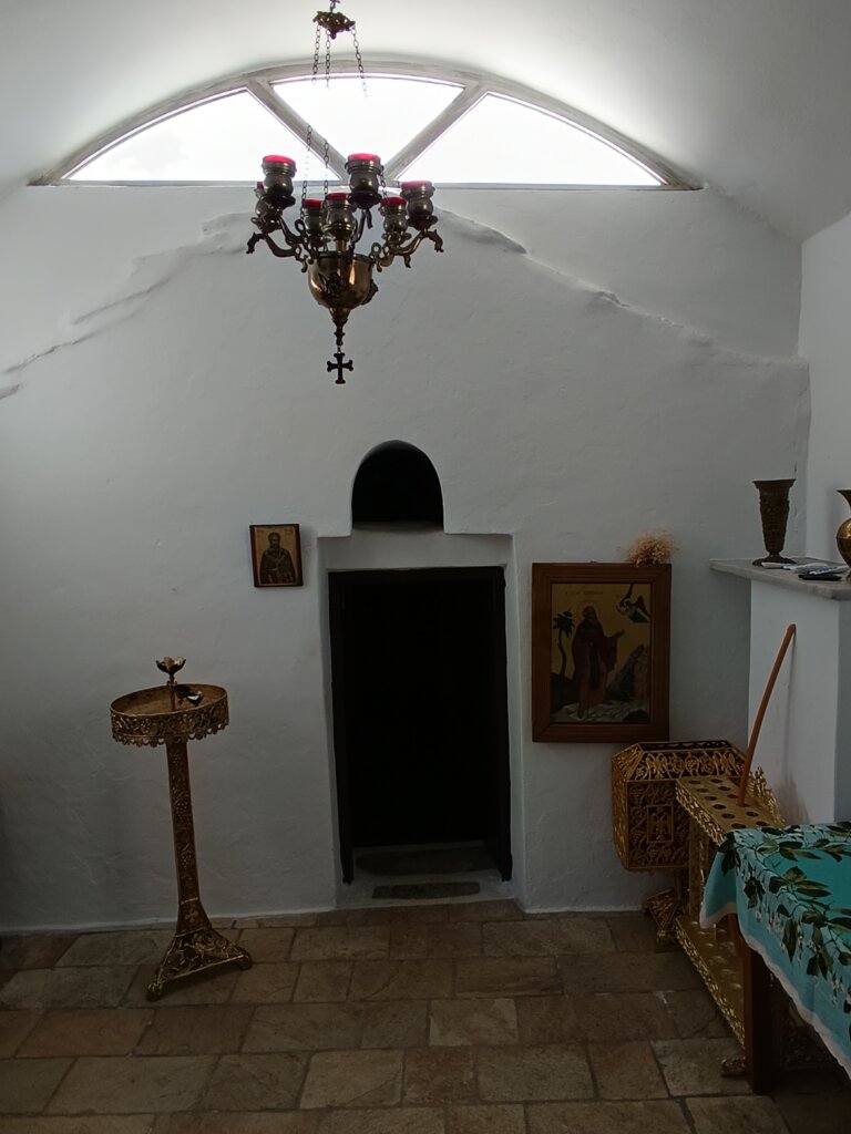 Mais notre coup de cœur du jour, c’est la petite église de Saint Pachomios. Nichée au cœur de la campagne de Tsikalario, elle est d’une simplicité désarmante. On parie que vous l’aviez ratée en filant vers Apano Kastro la dernière fois, non ? Prenez le temps de pousser la porte (si elle n’est pas verrouillée par un vieux loquet récalcitrant) : l’atmosphère y est presque mystique, surtout avec cette lumière d’hiver qui joue à cache-cache avec les voûtes de pierre.