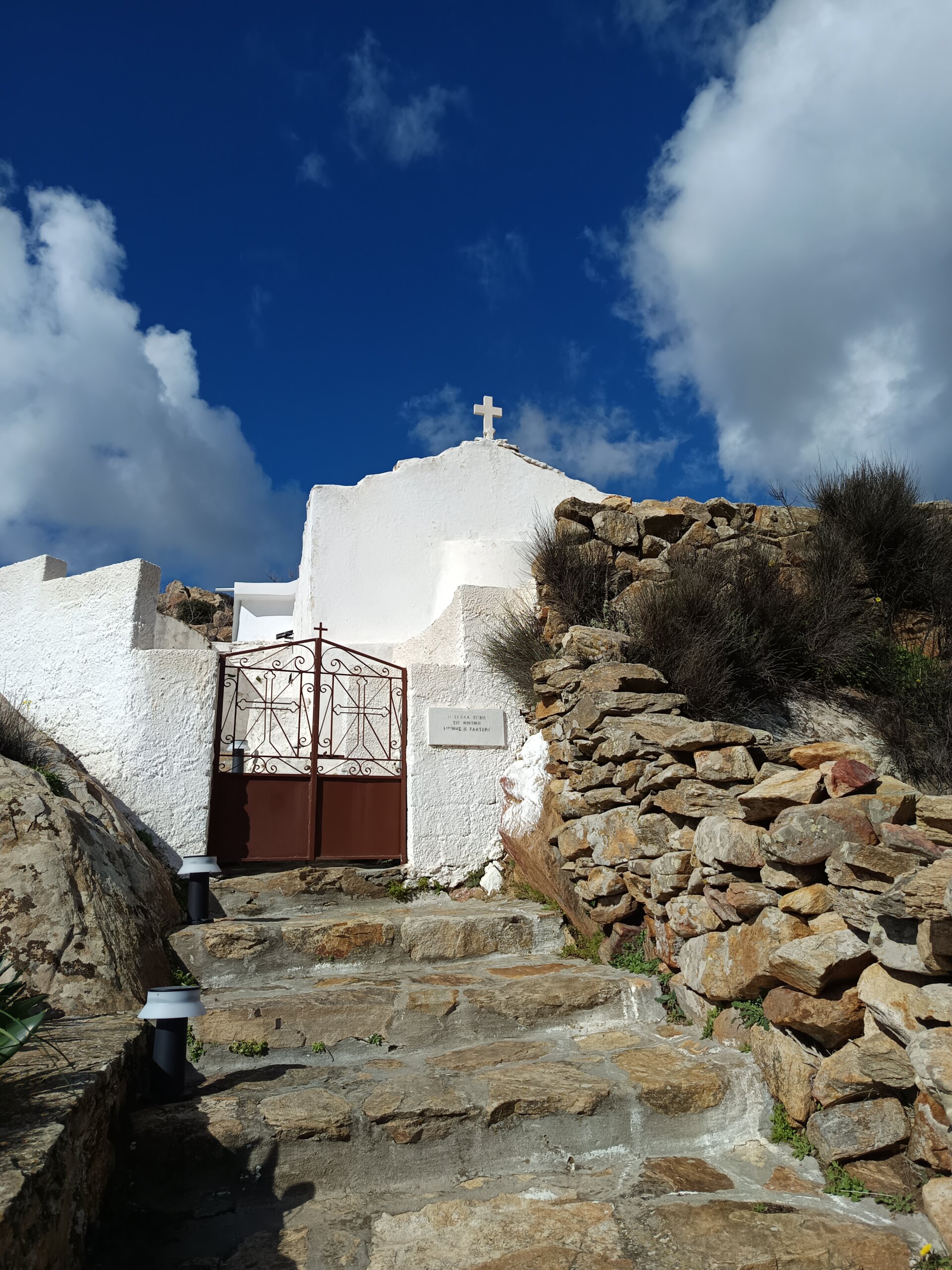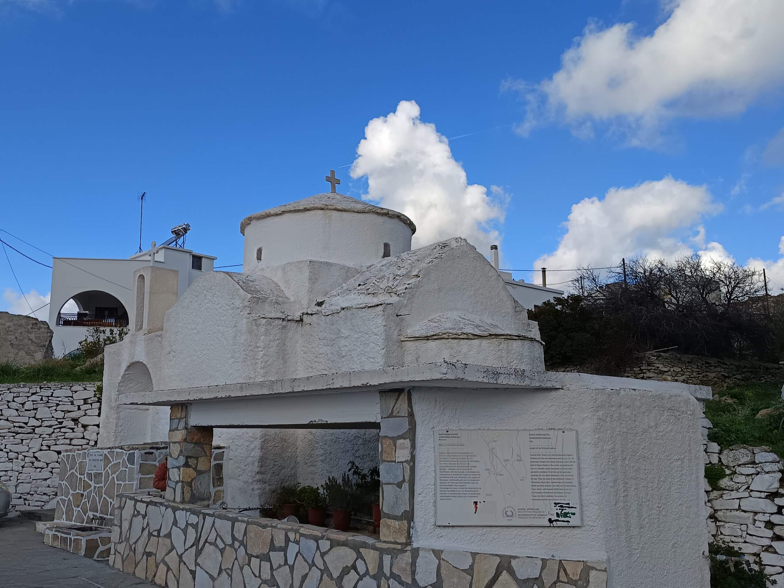 Mais notre coup de cœur du jour, c’est la petite église de Saint Pachomios. Nichée au cœur de la campagne de Tsikalario, elle est d’une simplicité désarmante. On parie que vous l’aviez ratée en filant vers Apano Kastro la dernière fois, non ? Prenez le temps de pousser la porte (si elle n’est pas verrouillée par un vieux loquet récalcitrant) : l’atmosphère y est presque mystique, surtout avec cette lumière d’hiver qui joue à cache-cache avec les voûtes de pierre.