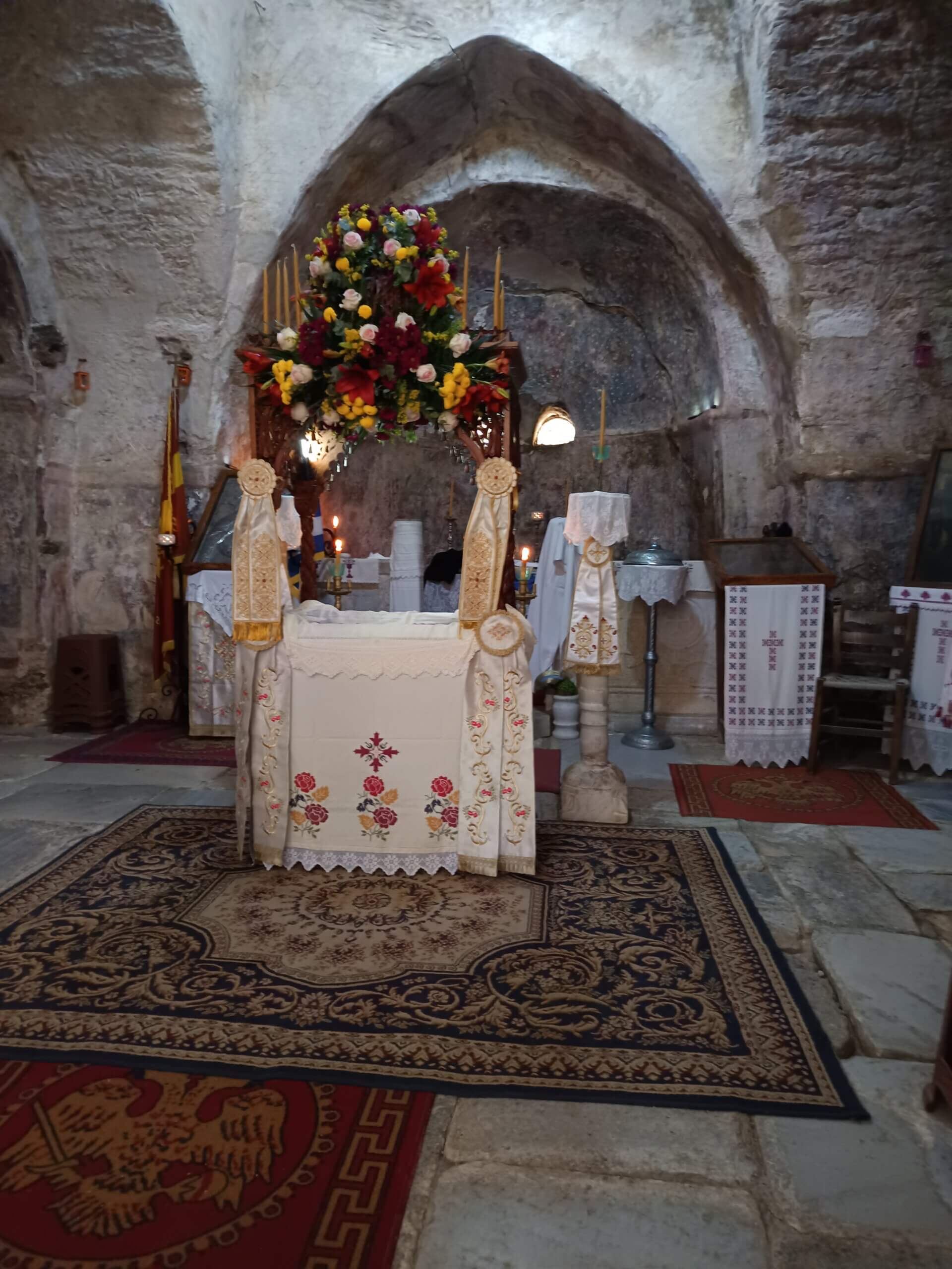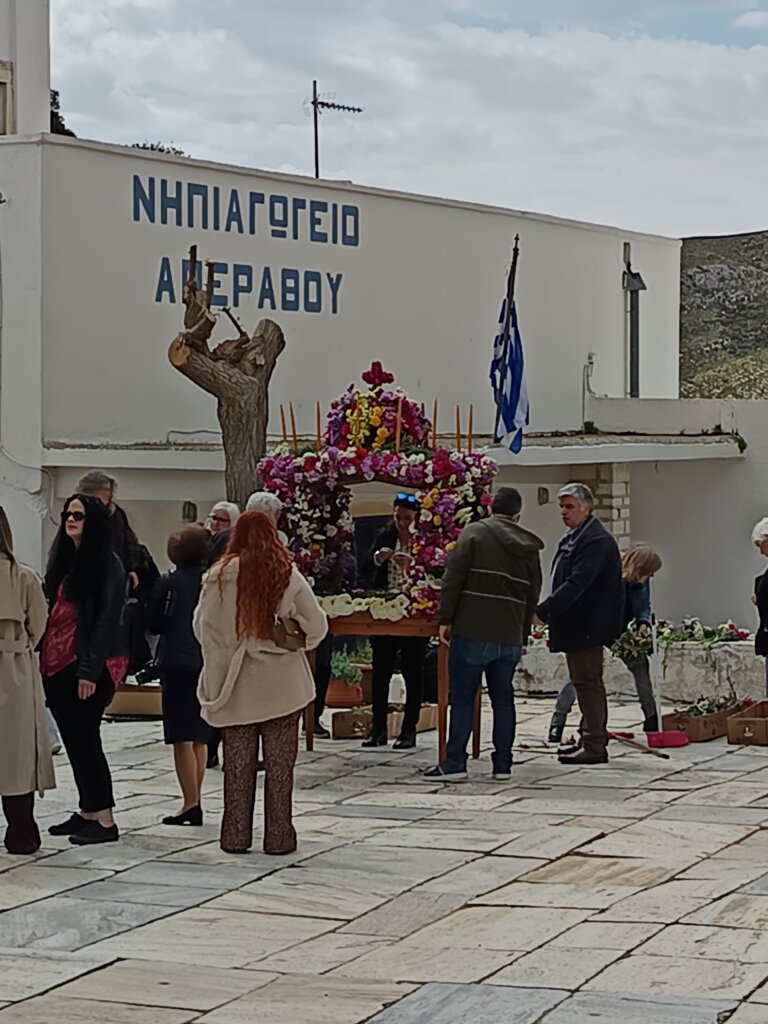 Le Vendredi Saint, nous avons profité d’un petit tour de l’île pour admirer les préparatifs de l’Epitaphios (le tombeau du Christ) orné de fleurs fraîches.
