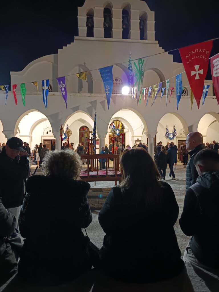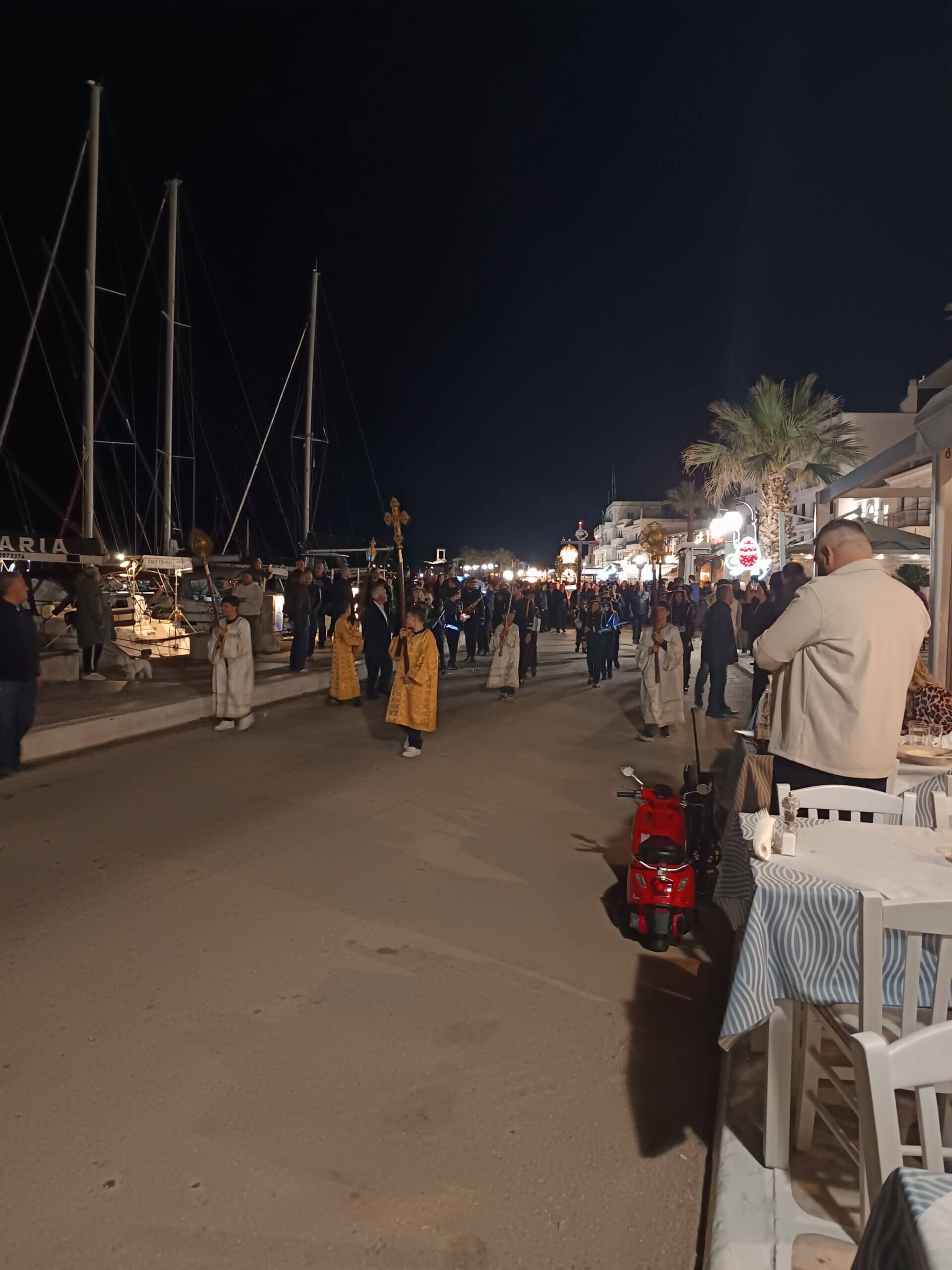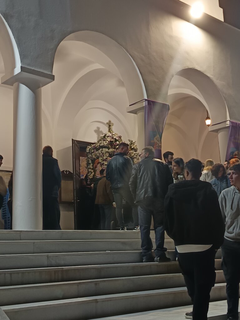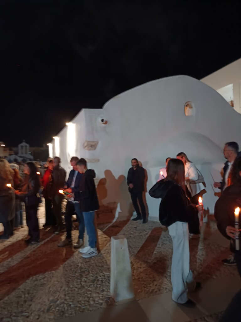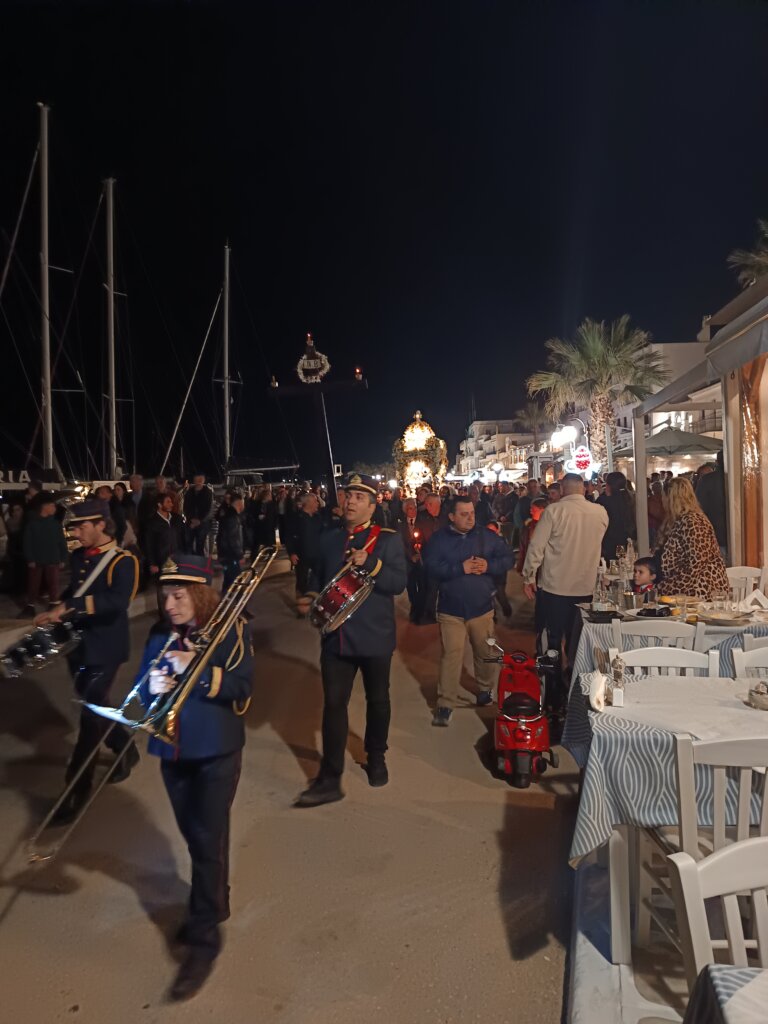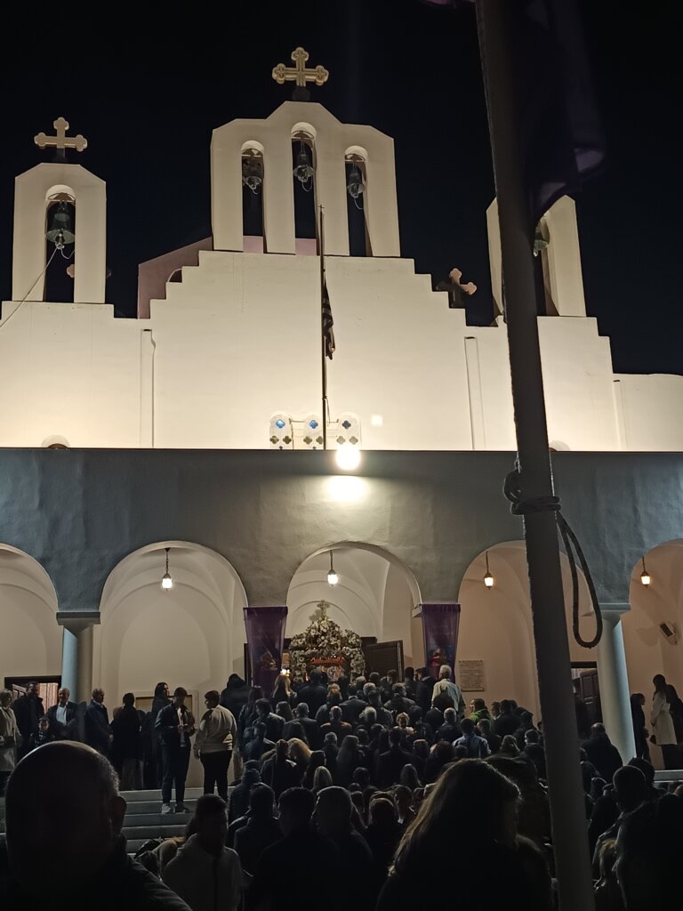 En soirée, nous revoici au cœur de la ville de Naxos pour suivre la procession solennelle, avant de rejoindre les fidèles qui passent sous l’Epitaphios placé à l’entrée de l’église — une tradition qui demande un peu de souplesse, mais qui vaut le détour !